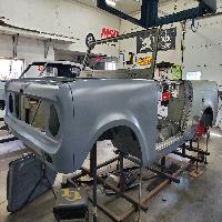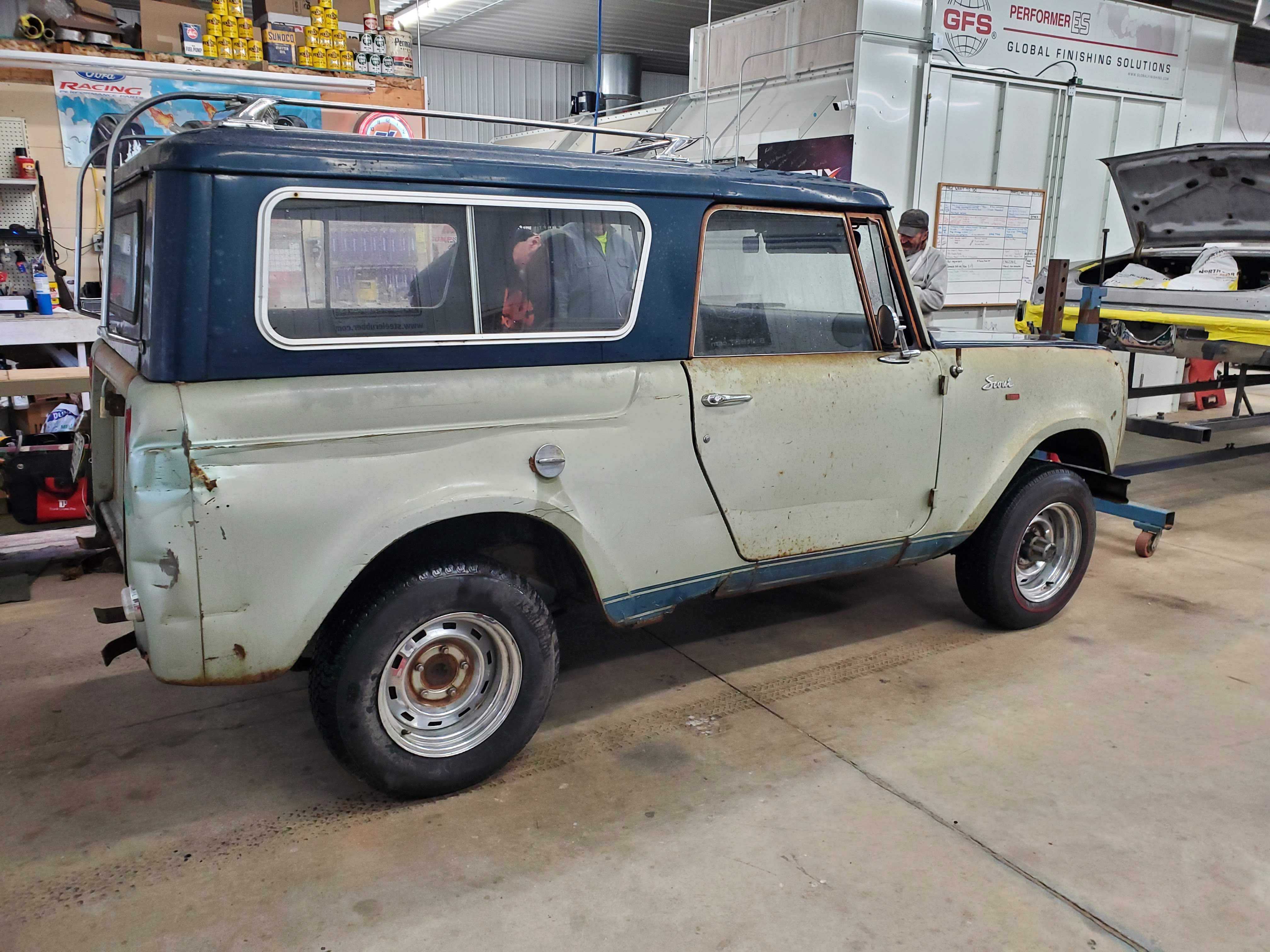 Complete frame off restoration of a rare Aristocrat version of the 1969 Scout 800. Extensive rust repair was required just to get the body square and re-fitted to the chassis and almost all the body structure under the sheet metal ended up being replaced.
