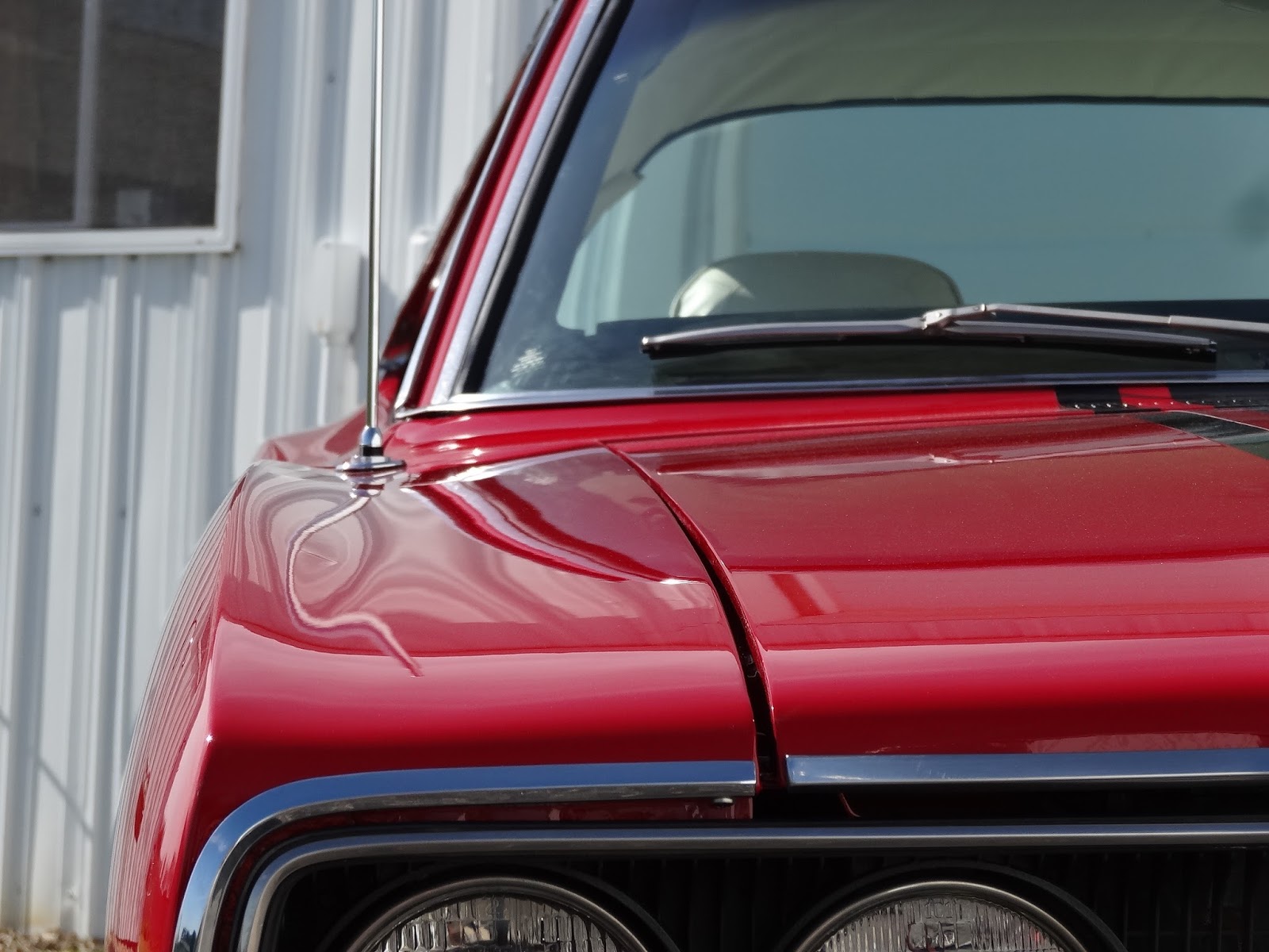 All the seats and door panels have new, red vinyl upholstery and the correct finishes. We did not go so far as to create a resto-mod but we installed a few creature comforts on the inside while preserving the integrity of the cars styling. Fresh carpet, also in red, covers sound deadening pads which will make for a comfy, quiet ride.