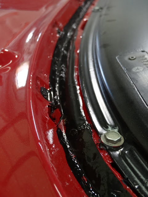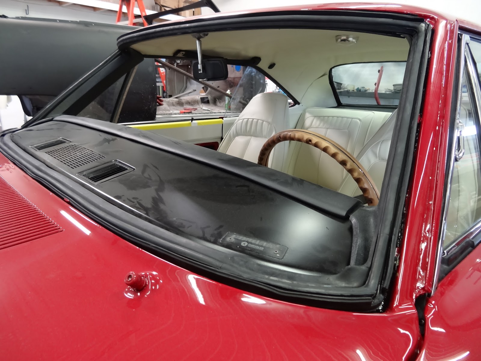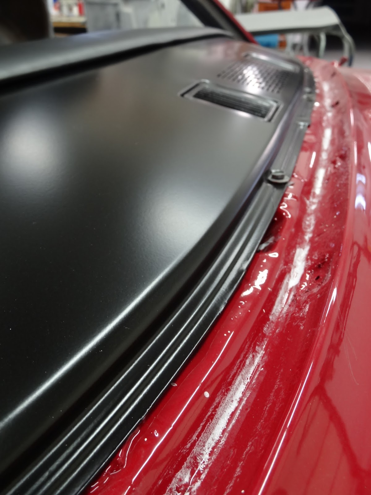 Cleaned, prepped, seam sealed and then painted, the glass channel area is ready for clip placement, windshield gasket and then glass installation