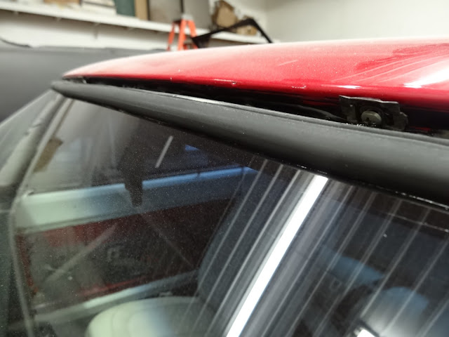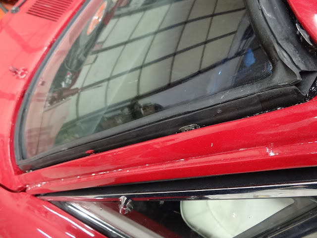 Urethane in place in the glass channel area as we prepare to place the windshield gasket. This stuff is a complete mess. Be very careful not to get it on any surface you plan on keeping intact!