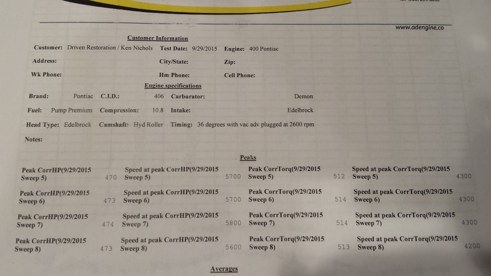 The re-built Pontiac 400 now makes 475 HP and 515 ftlbs torque!