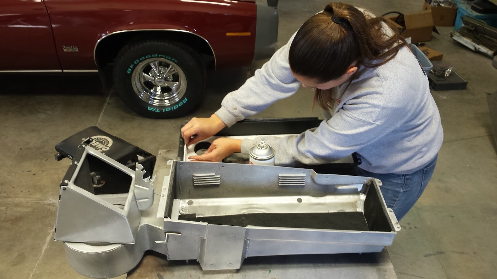 Repainted to match the satin black used for the interior parts on the 1970 Dodge Charger this box will be going into.
