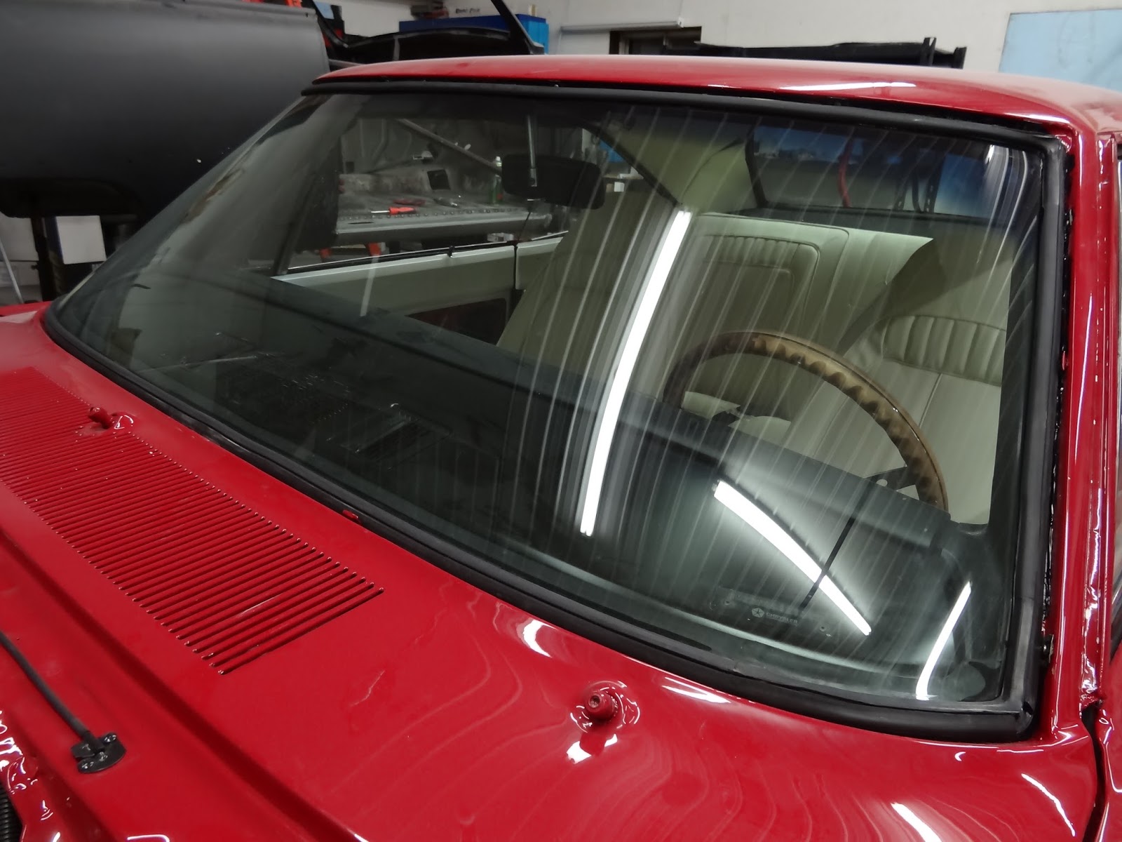 Now that the paint is completed, including wet sanding an buffing, we can continue with the assembly and glass installation. Notice that the dash is in place already. You can't reinstall the dash if the glass is in the car.