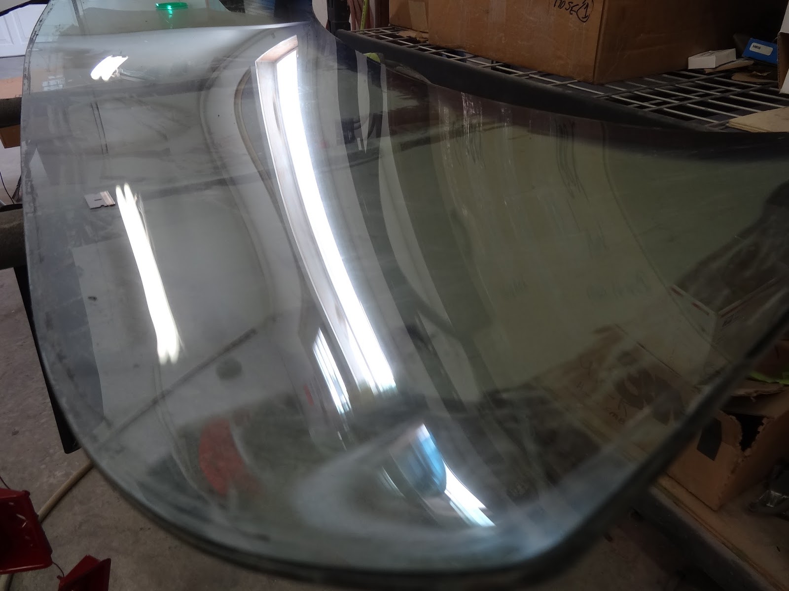 We are re-installing the original windshield. Clean and prep the glass, removing all traces of old urethane, over spray from old paint jobs or other dirt and debris. We used a razor blade and lacquer thinner to ensure a clean surface on the glass. Inspect closely for hairline cracks and chips before deciding to re-install used glass.
